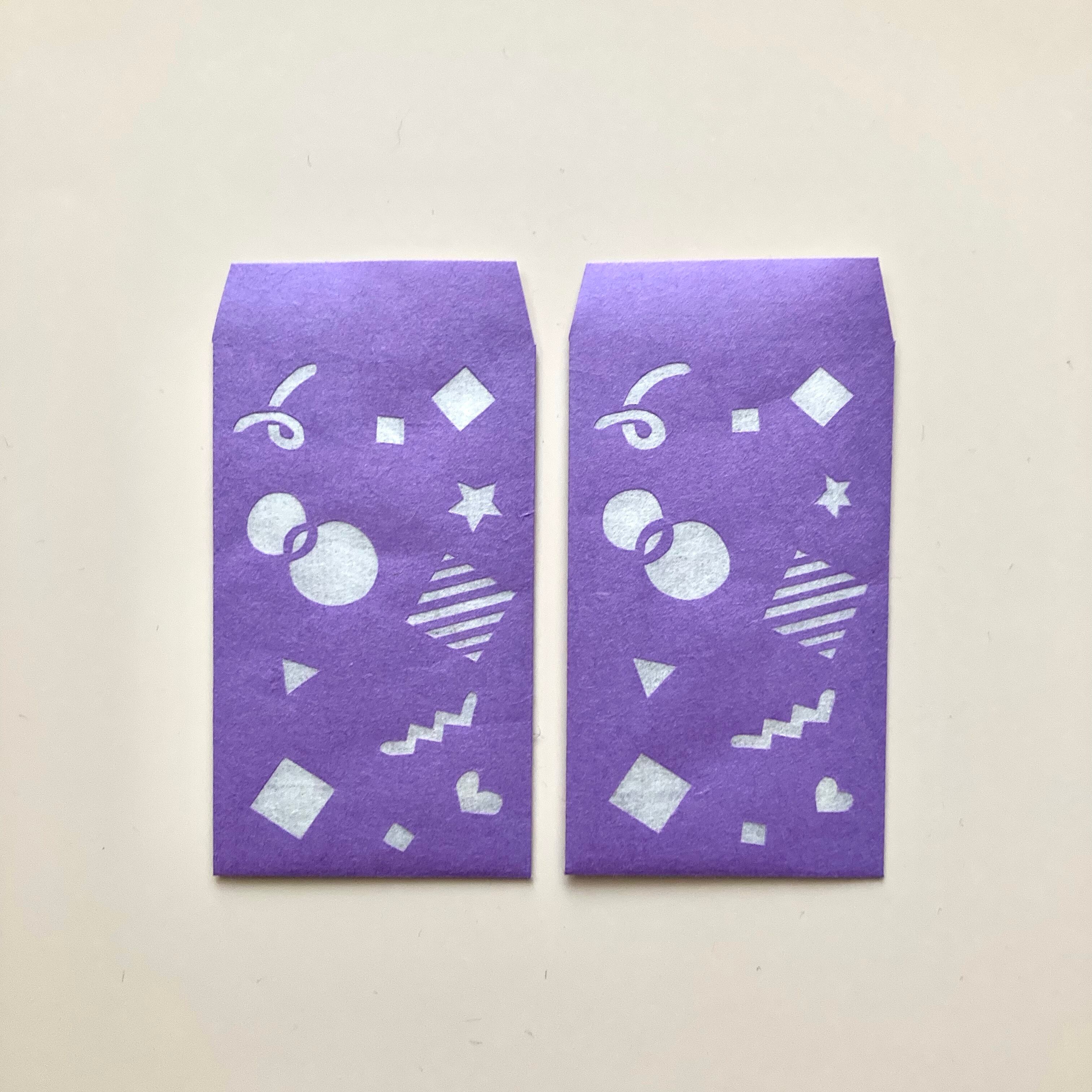 和紙のぽち袋 80年代風ファンシー模様(パープル)